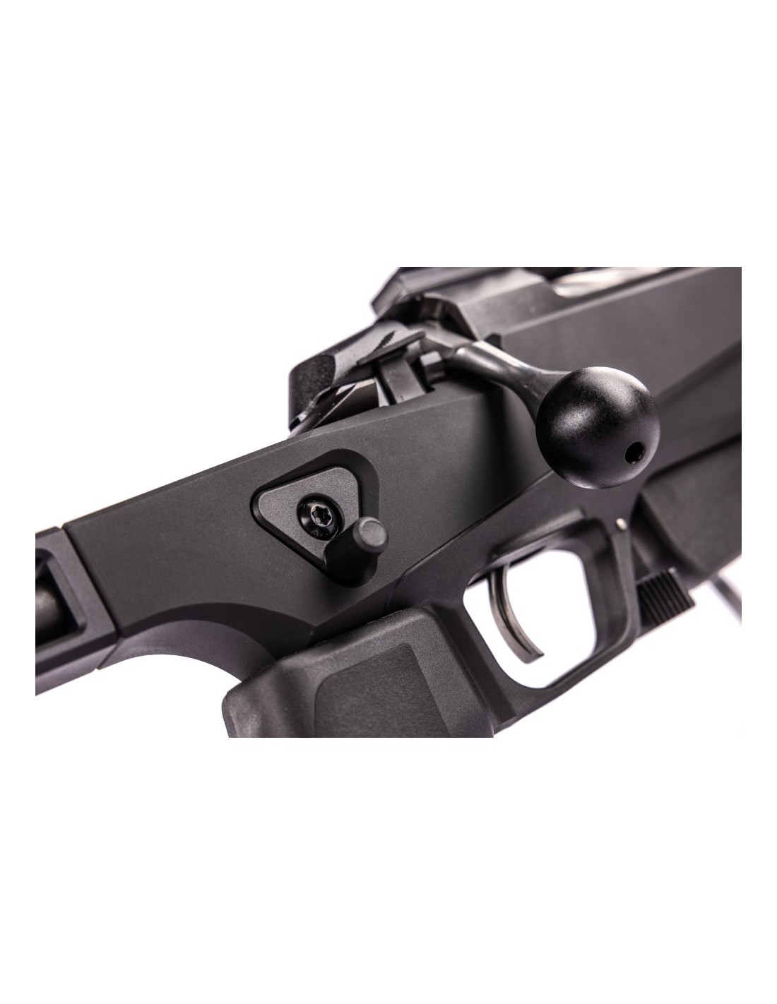 - CARGADOR INTECAMBIABLE: El rifle cuenta con un cargador intercambiable, lo que permite el uso de varios tipos de cargadores. El botón de liberación del cargador está integrado en el guardamonte para un cambio de cargador intuitivo y eficiente.