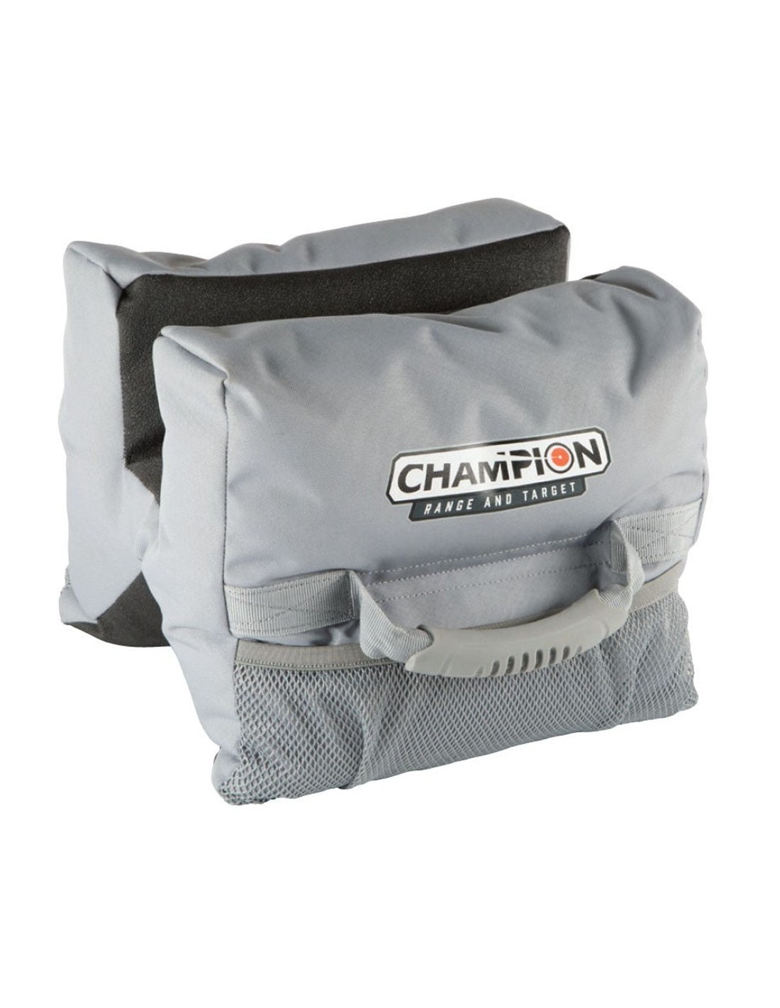 Los sacos de tiro Champion están diseñados para facilitar una colocación precisa y estable del arma. El X-Ringer Bag se trata de una bolsa pesada (9 Kg), lo que le dota de extrema estabilidad para realizar disparos de precisión. El diseño en forma de X, mantiene la bolsa asentada y asegura el arma de fuego para un disparo preciso. Este tipo de estructura lo hace excelente, para que pueda apoyarse en diferentes tipos de superficies irregulares. Además, esta configuración hace que no sea necesario disponer de un saquete culatero para alcanzar una buena estabilidad.