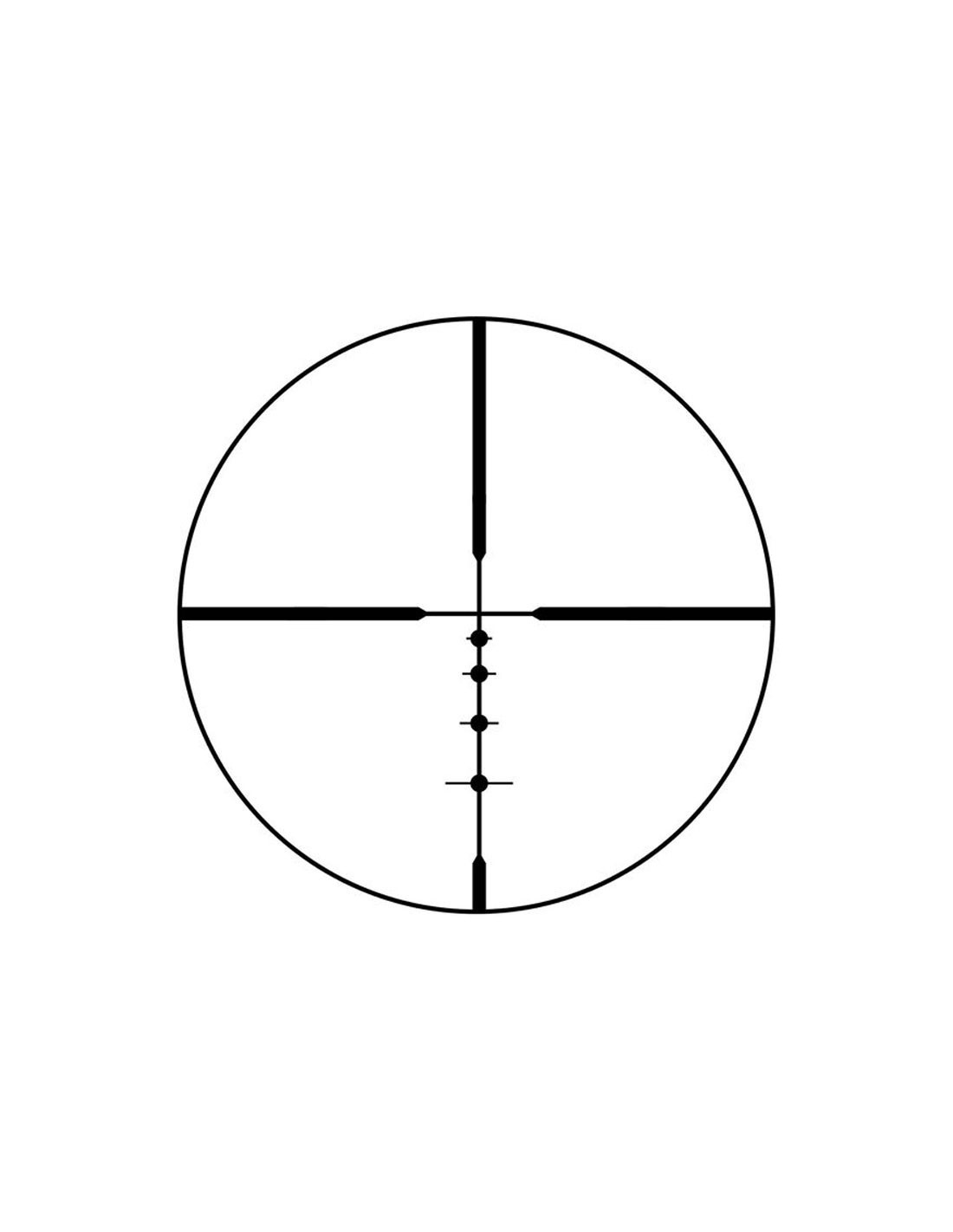 - La retícula balística rápida DOA tiene puntos de caída de hasta 600 yardas y resistencia al viento de 5 mph hasta 500 yardas.