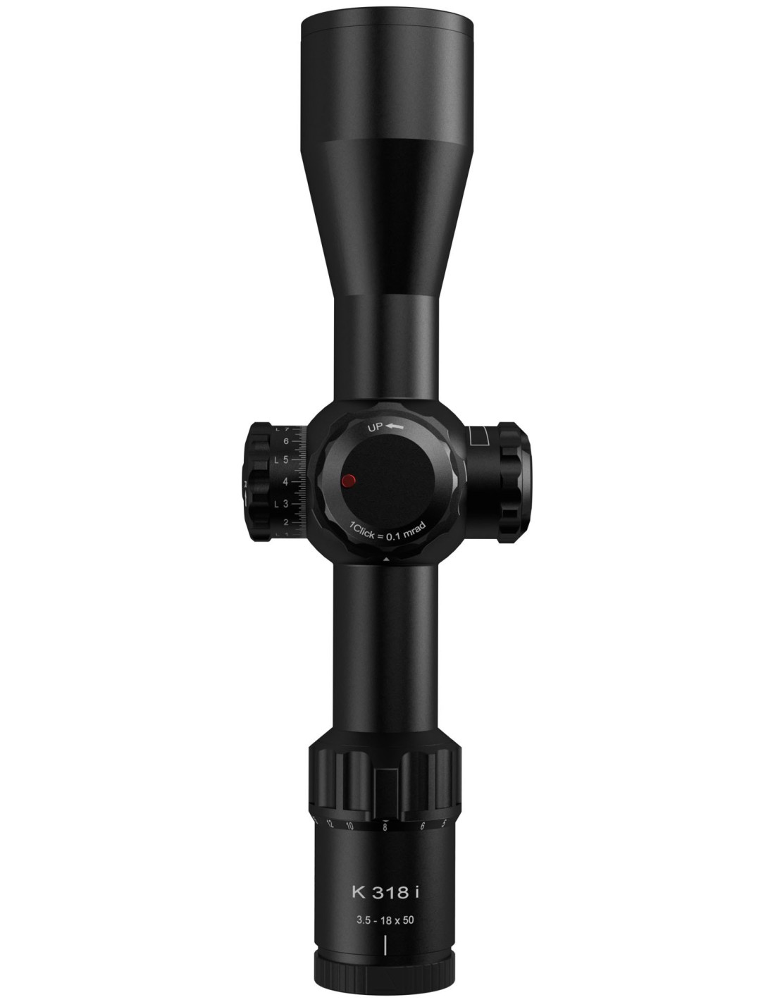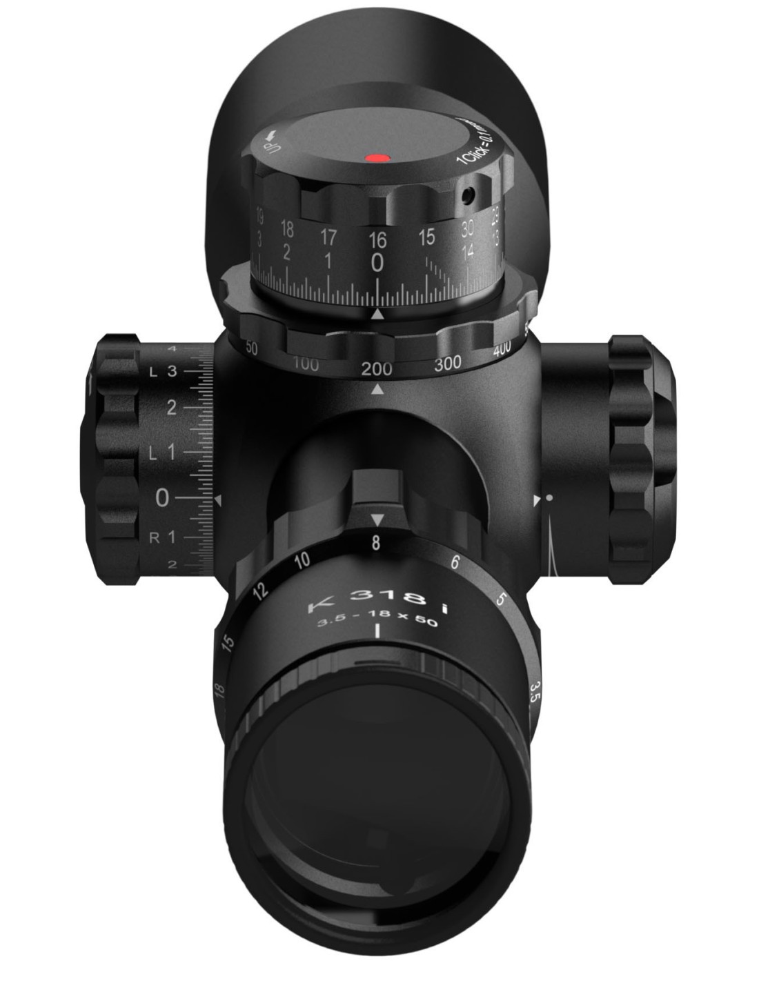 Todos los visores de la serie K tienen la rueda de paralaje integrada en la torreta de elevación. La disposición central patentada en la parte superior del visor hace que la operación por diestros y zurdos sea igualmente cómoda.