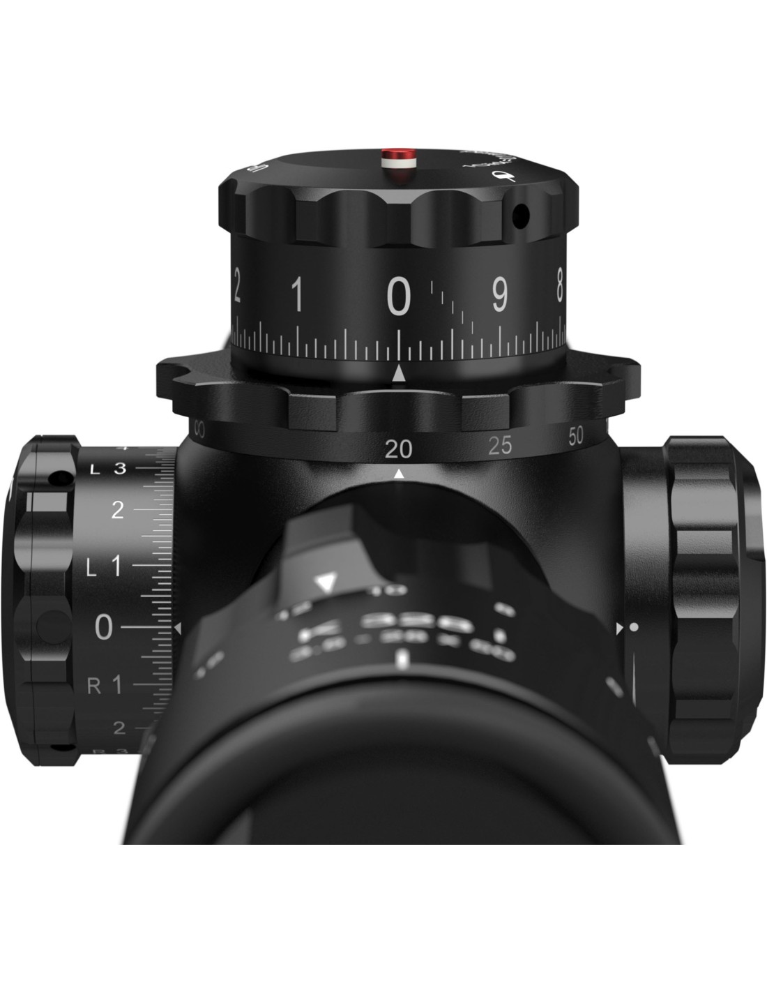 Todos los visores de la serie K tienen la rueda de paralaje integrada en la torreta de elevación. La disposición central patentada en la parte superior del visor hace que la operación por diestros y zurdos sea igualmente cómoda.