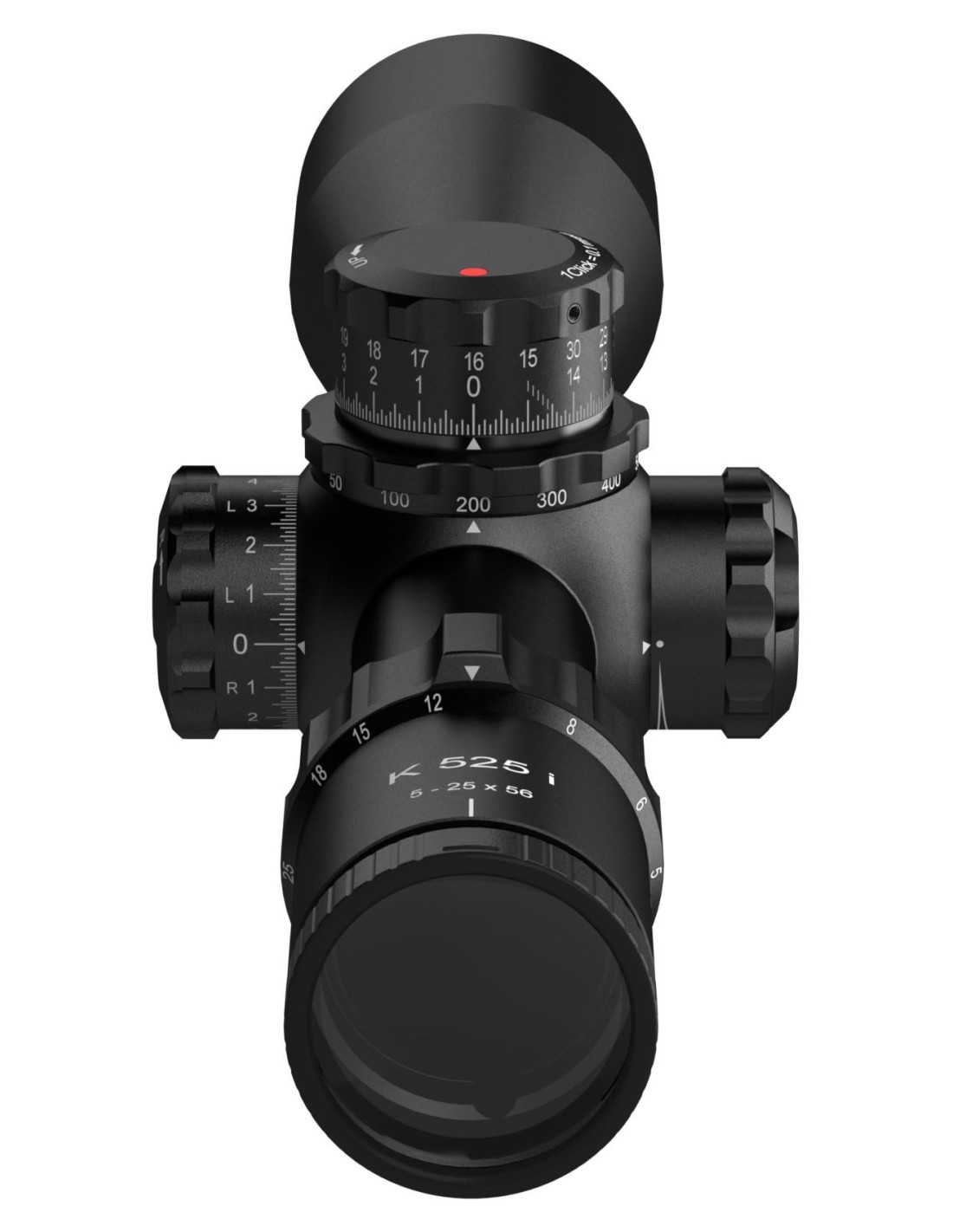El K525i están disponibles con 5 retículas iluminadas en el primer plano focal y opcionalmente es posible solicitar bajo pedido la colocación de la torreta de deriva en el lado izquierdo del visor.