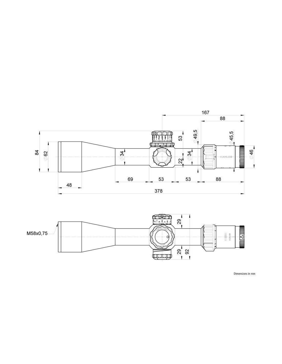 Todos los visores de la serie K tienen la rueda de paralaje integrada en la torreta de elevación. La disposición central patentada en la parte superior del visor hace que la operación por diestros y zurdos sea igualmente cómoda.