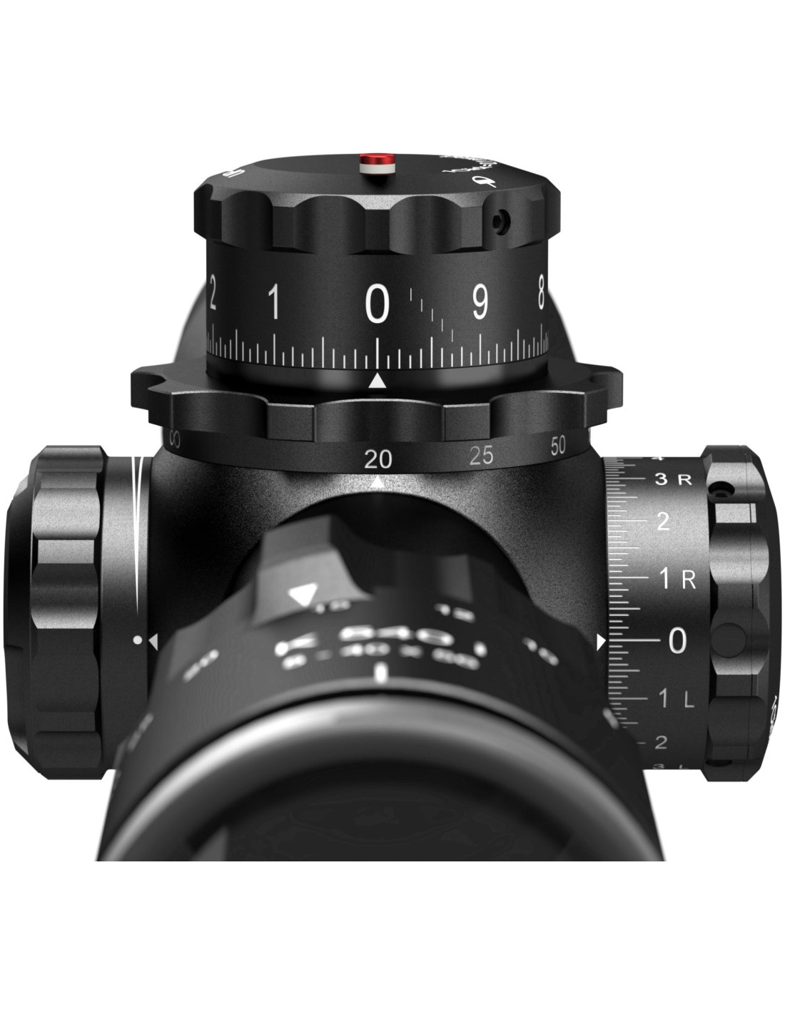- Sistema patentado de rueda de paralaje integrada en la torreta de elevación, que permite mantener la posición de tiro sin separar el ojo del ocular, además de hacerla accesible de forma intuitiva y ambidiestra.
