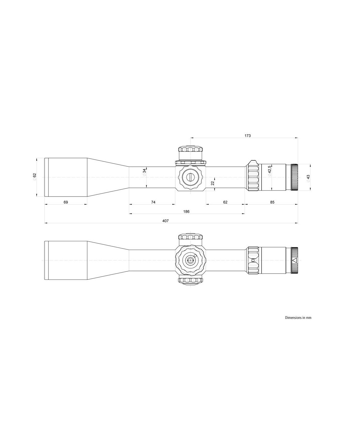 - Retícula iluminada en el primer plano focal para una estimación segura de tamaños y distancias.