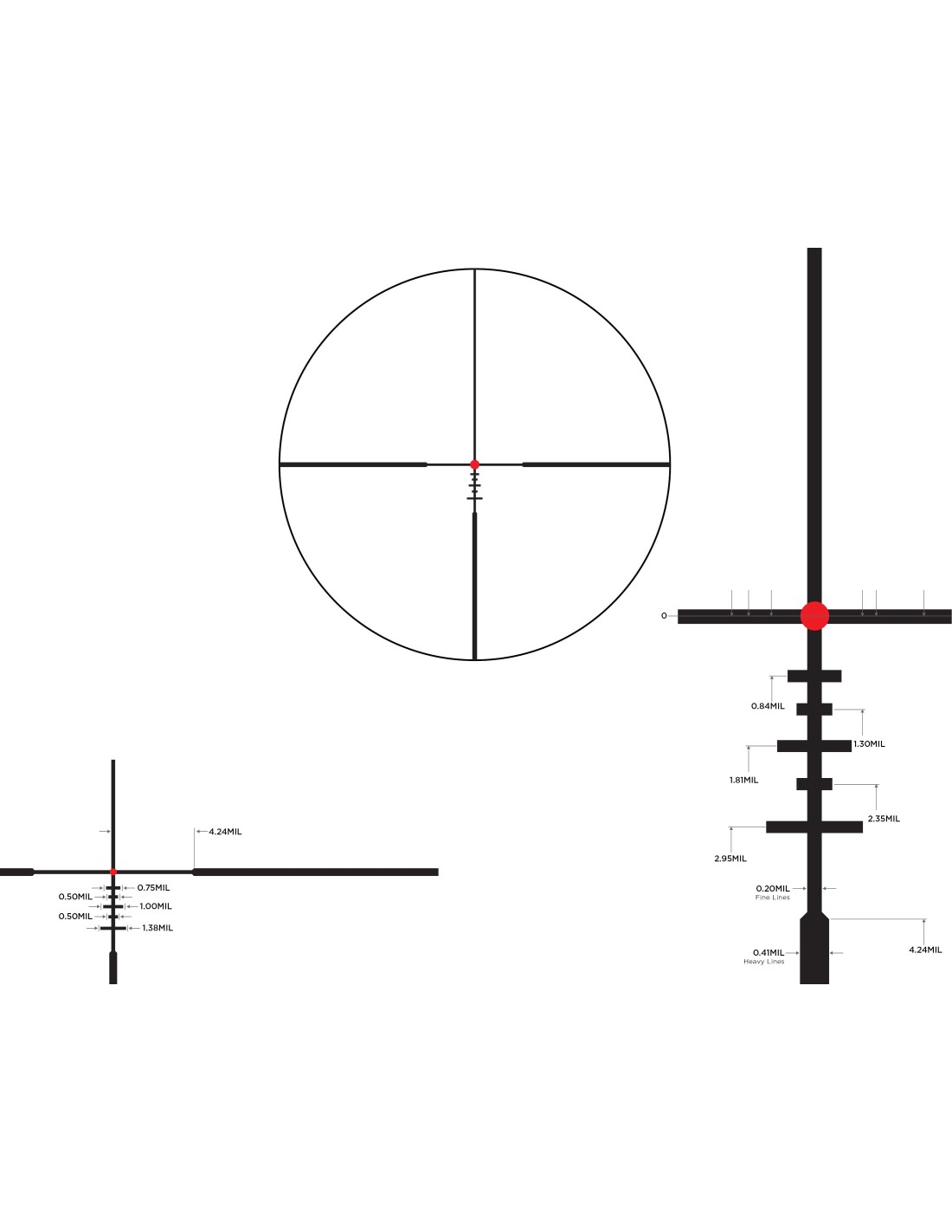 Tiene una retícula FireDot BDC iluminada, de tipo táctico y en segundo plano focal (SFP), que guarda la proporción para cálculos de distancia a sus máximos aumentos. Su buena óptica con varios tratamientos propietarios, entre ellos el sistema de administración de luz Twilight, hace que pocos visores de este segmento de precio, ofrezcan un comportamiento de alto nivel en las horas crepusculares.
