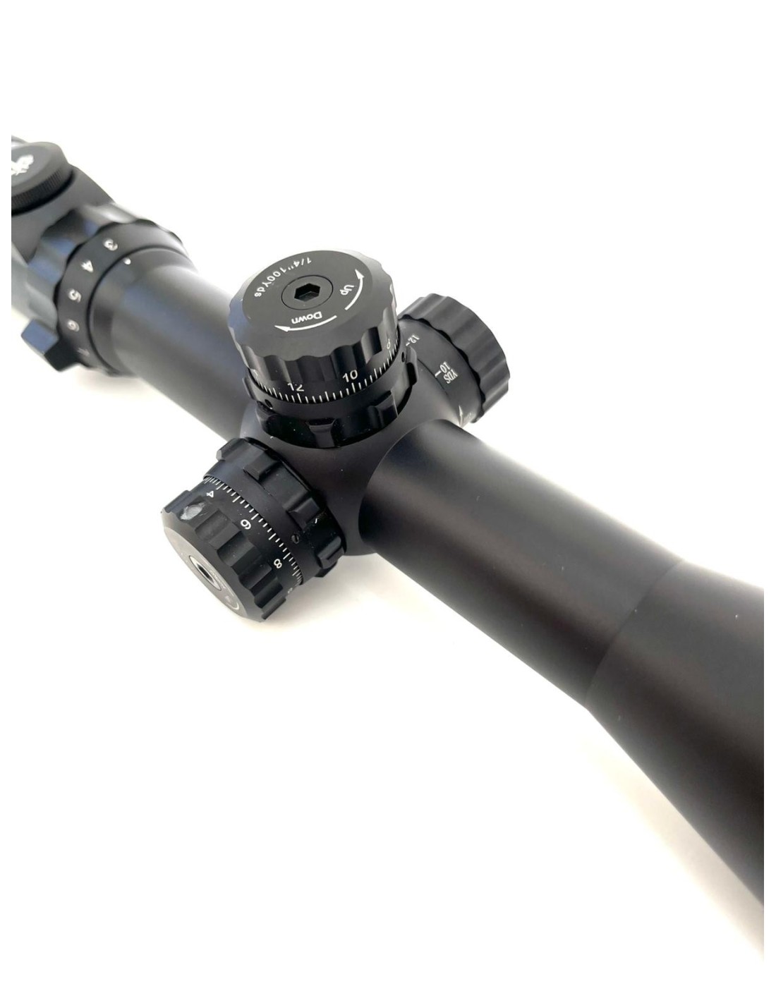 El ajuste de paralaje lateral desde 10 yardas hasta el infinito permite una precisión absoluta a cualquier distancia. Las torretas tácticas de ajuste con clic de 1/4 MOA aseguran correcciones precisas y repetibles.